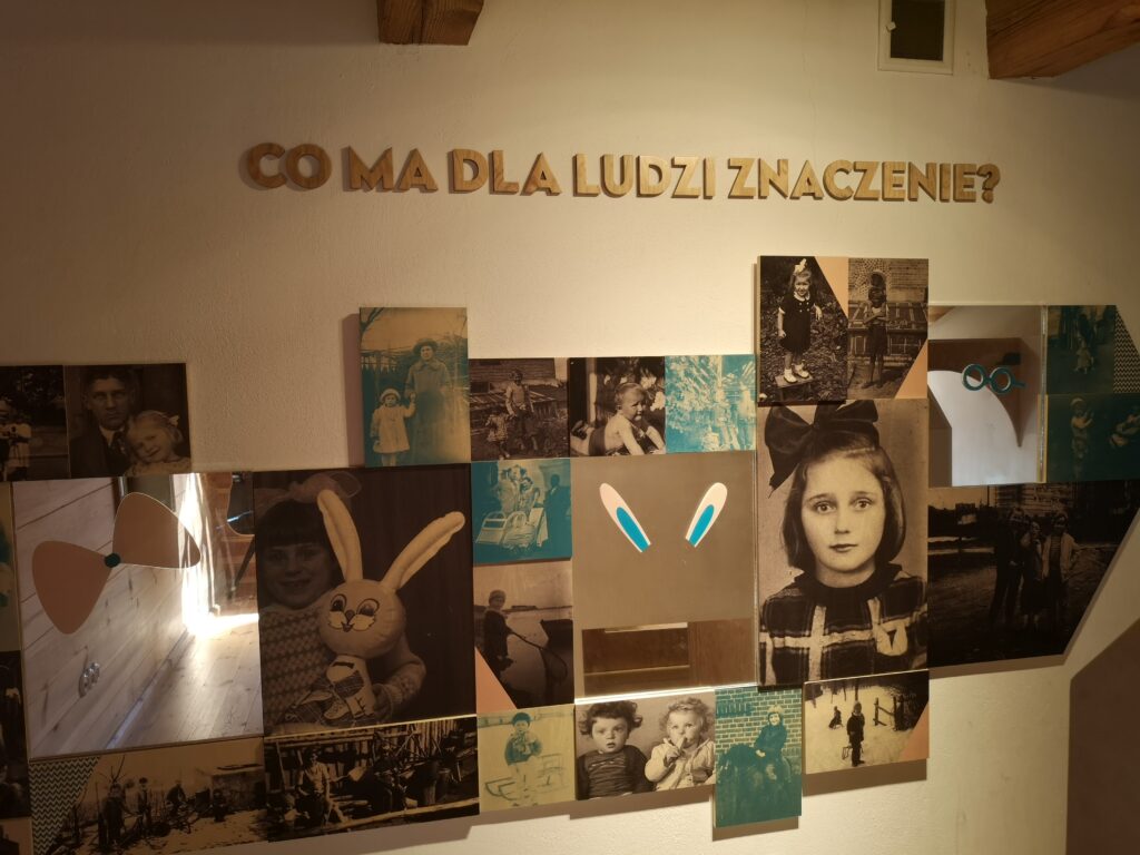 Nawet na tych przeszkleniach, dzięki którym można zajrzeć do środka, kiedy muzeum jest zamknięte, znajdowały się krótkie teksty. Na przykład pytania w stylu: „Kto tu mieszkał?”, „Do kogo należały te narzędzia?”. Pytań jest więcej i znajdują się w różnych miejscach – to jeden z moich ulubionych zabiegów tekstowych (bo są krótkie, uruchamiają ciekawość i potrzebę domknięcia poznawczego, czyli uzyskania odpowiedzi).