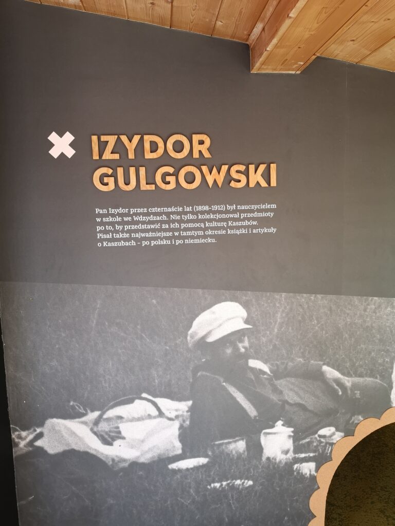 Całe muzeum jest przesycone obecnością założycieli. Witają nas w drzwiach, są bohaterami autotematycznej wystawy, możemy pójść na ich grób, dowiadujemy się, że ich potomkowie nadal mieszkają we wsi. Znajdujemy sporo informacji biograficznych, które mogłyby znaleźć się w encyklopedycznej notce. Rozumiemy ich znaczenie dla zachowania i rozwoju lokalnego folkloru, rękodzieła, sztuki. Wiemy, że Izydor był nauczycielem i pisarzem, a jego żona malarką i animatorką rozwoju kaszubskiego haftu. Ale poznajemy ich również jako ludzi – widzimy zdjęcie uśmiechniętego Izydora leżącego na trawie podczas pikniku i dowiadujemy się, że Teodora lubiła koty.